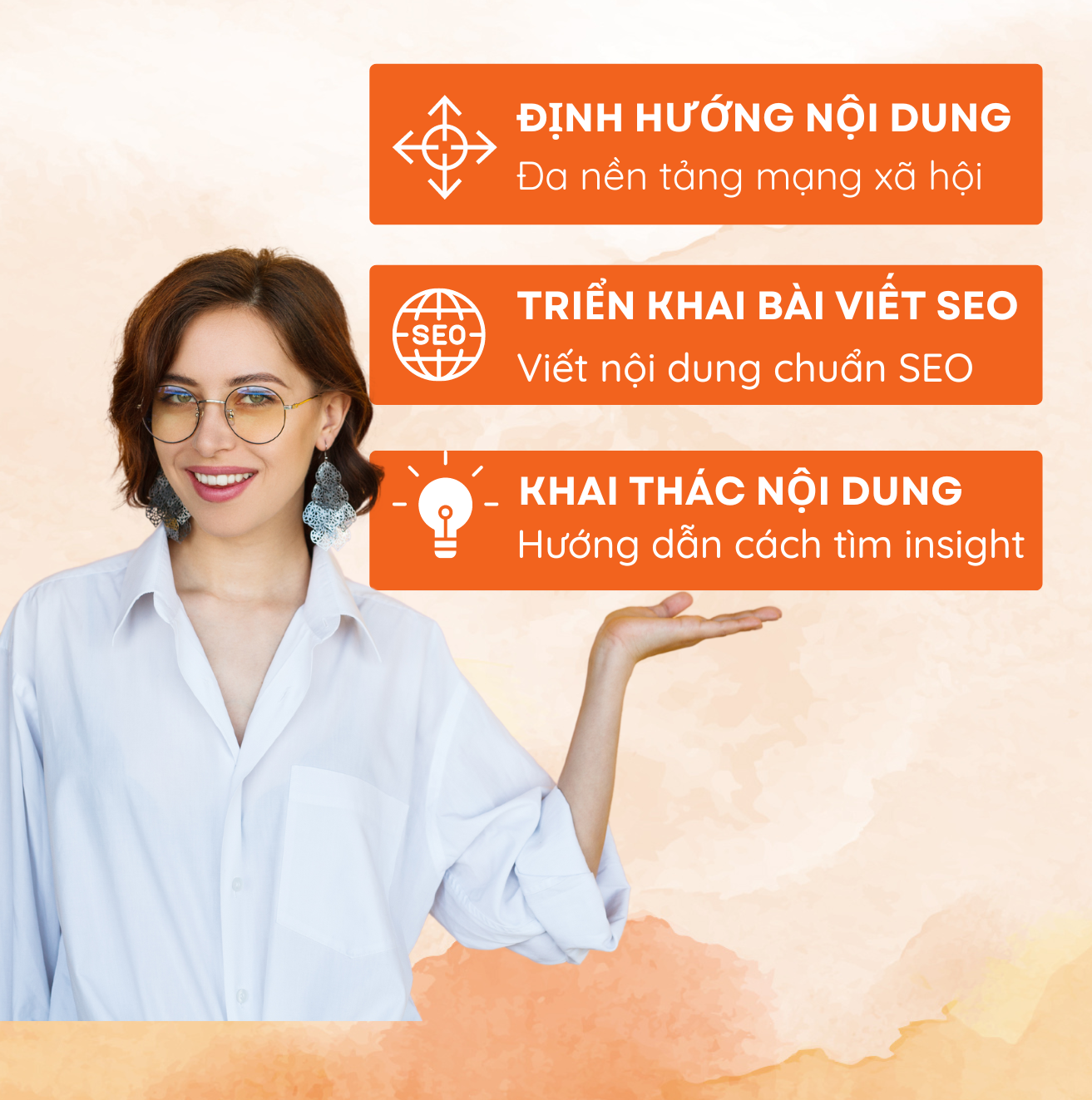Khoá học giúp học viên nắm có khả năng lên chiến lược, định hướng và triển khai nội dung đa nền tảng. Đồng thời xây dựng cho Content Marketer Mindset (Tư duy) - Skillset (Kỹ năng) - Toolset (Công cụ) để cạnh tranh giữa hàng nghìn nhân sự Marketing trên thị trường.